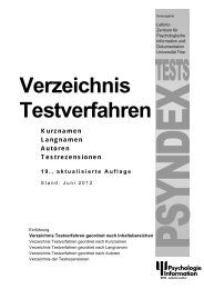 Verzeichnis Testverfahren Geordnet Nach Kurznamen Zpid